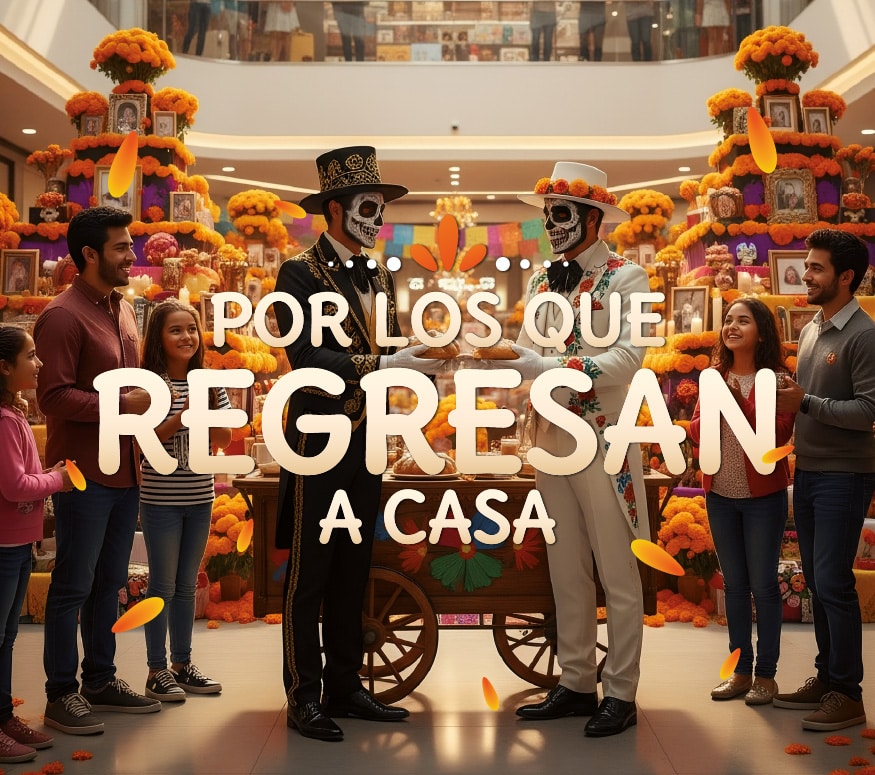 Celebra nuestras tradiciones 🌼🕯️ con un recorrido de catrinas en el centro comercial para convivir con los visitantes, tomarse fotos y compartir un delicioso pan de muerto.